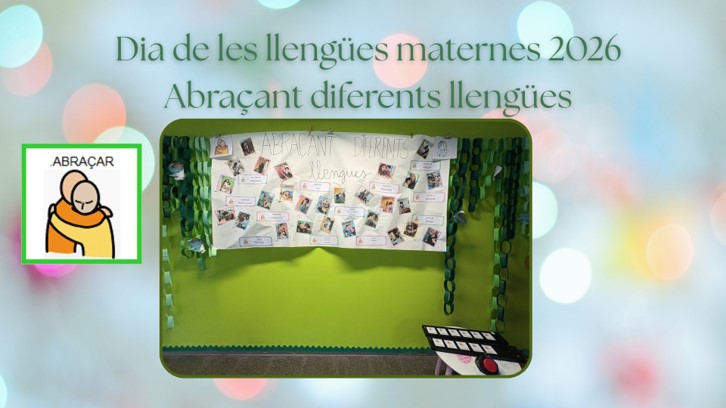 Aquest dilluns 23 de febrer hem estrenat la setmana amb un mural de les llengües maternes que conviuen a l’escola. Aquest mural l'hem titulat “Abraçant diferents llengües” i en ell es veuen rètols amb el nom de les diferents llengües dels infants del centre i com es diu “abraçar” en cada una d’elles. També fotos d’alumnat i professionals de l’escola fent-se una abraçada.